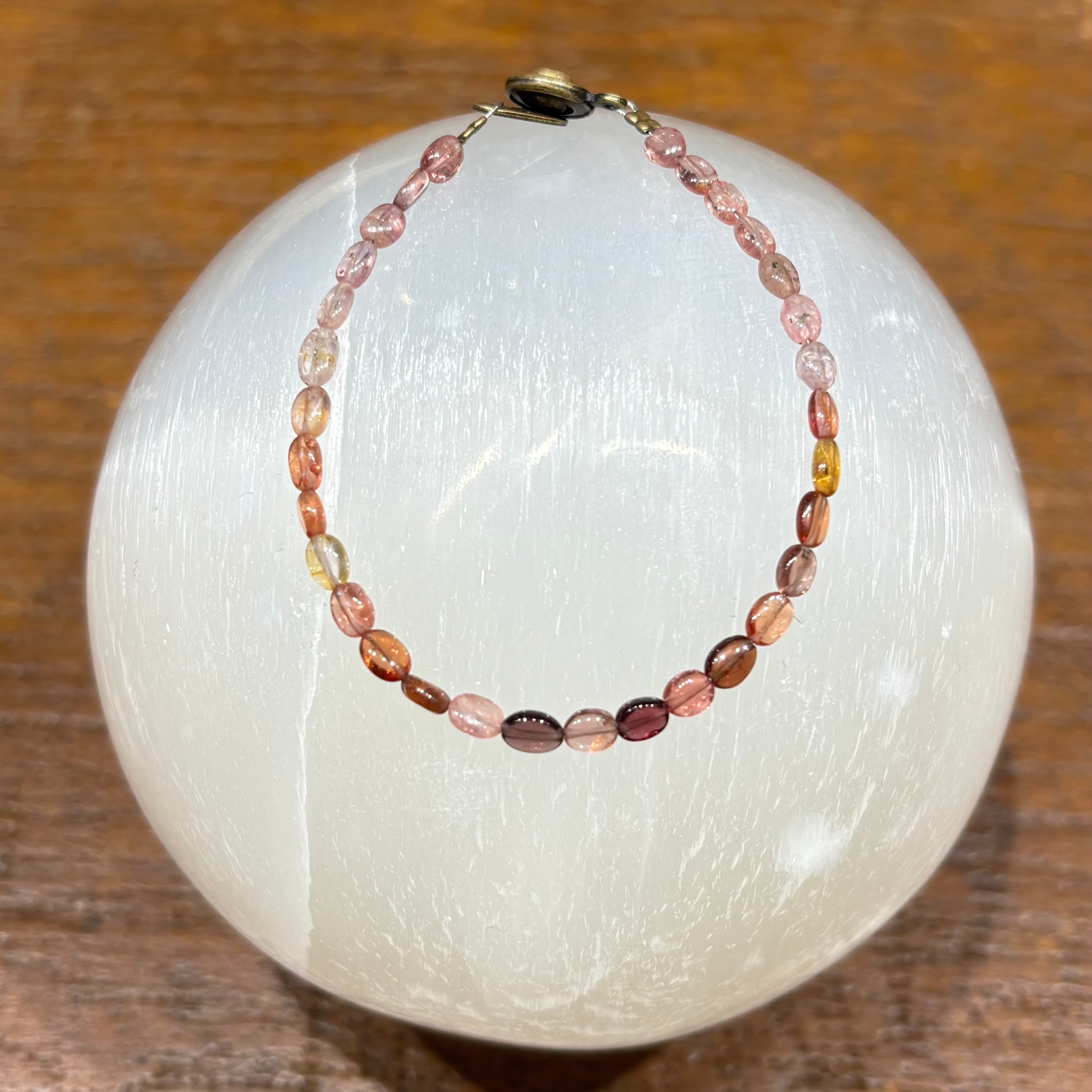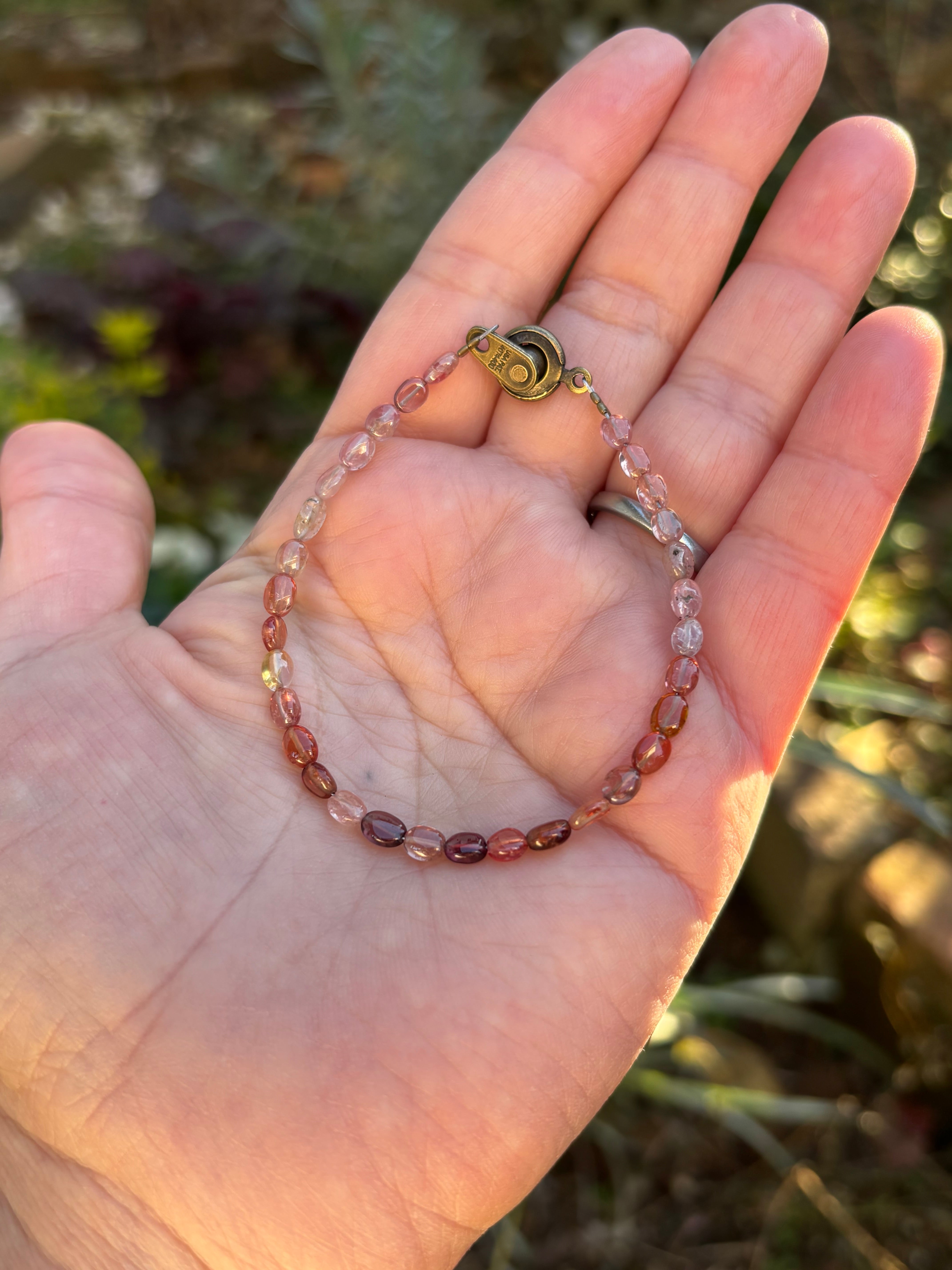 一粒一粒が異なる色彩を放つ、小粒のスピネルを繋いだブレスレットです。
