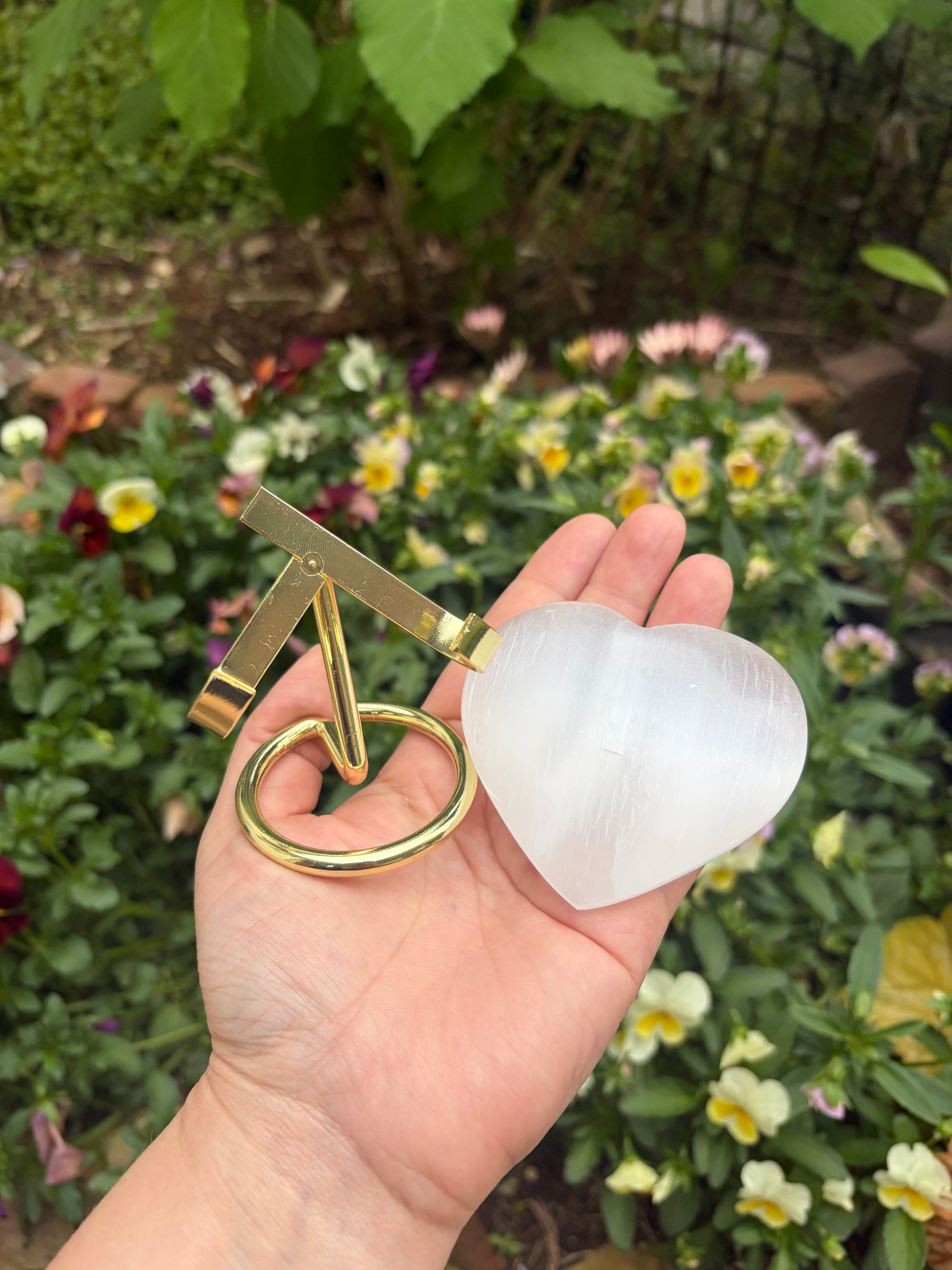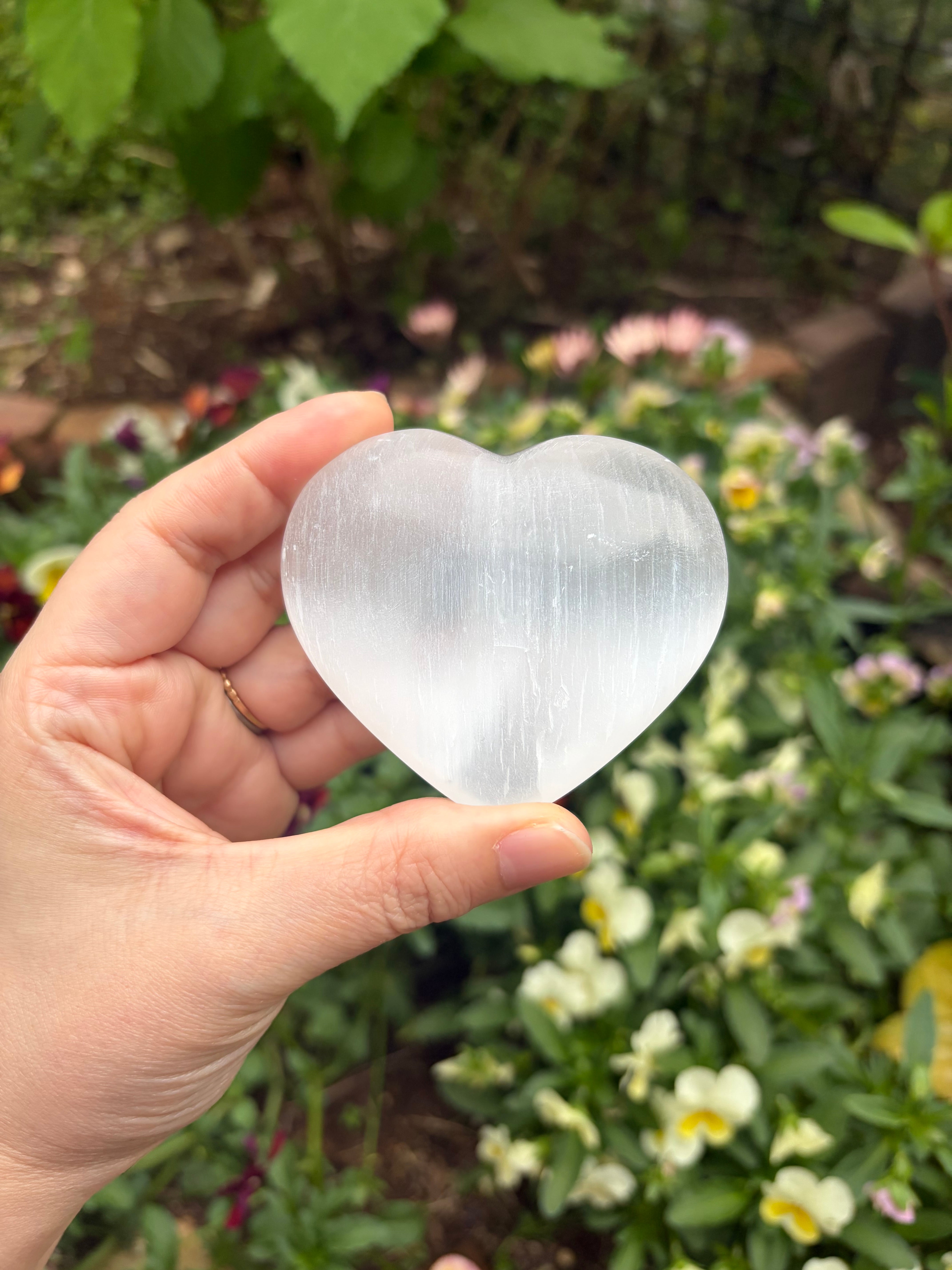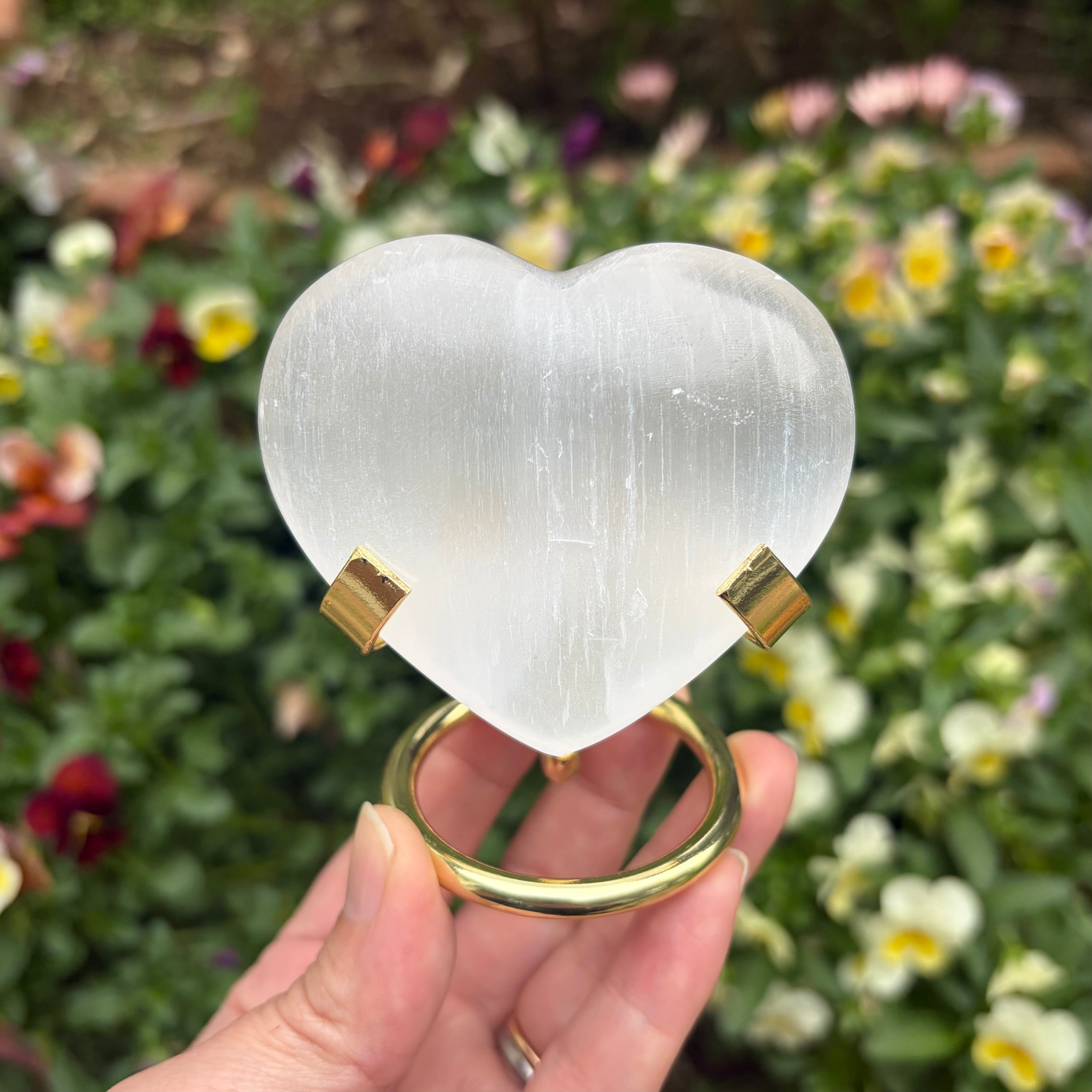 シルクのような美しい光沢を放つ、セレナイトのハートです。